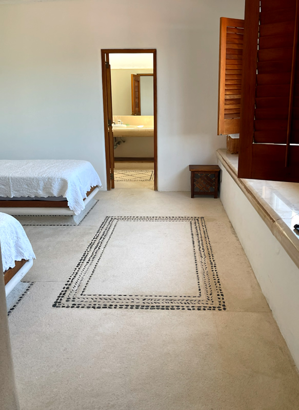 It has 4 bedrooms; the master bedroom has two full bathrooms. The other two bedrooms each have a full bathroom.
